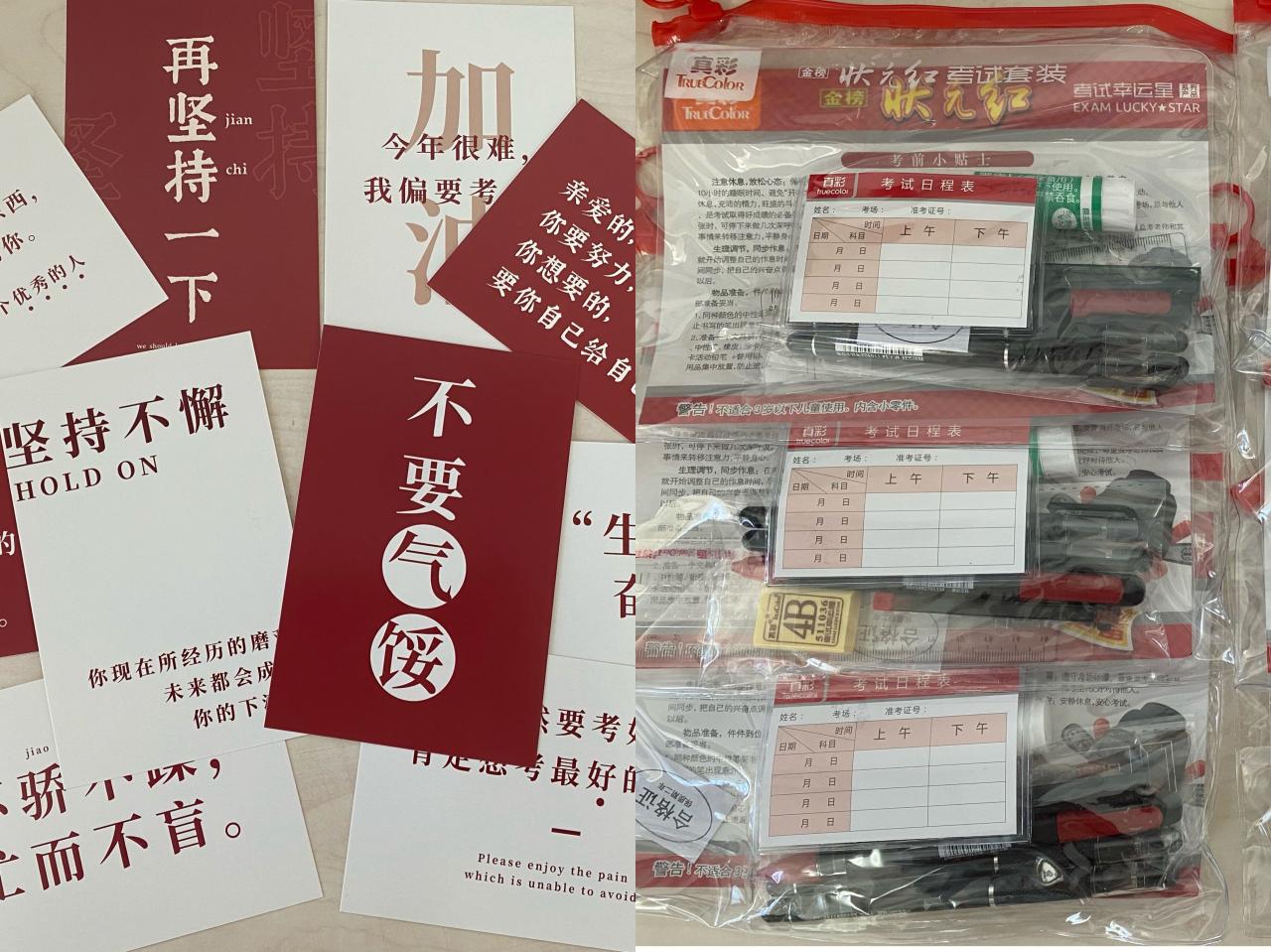随后,周郭军副书记为考研学子分发了精心准备的考研慰问礼包,包含着公司领导老师们以及学弟学妹们诚挚的祝福语。每一份礼包中都有一份祝福卡片,祝福每一位考研学子取得优异成绩,升入理想学府。