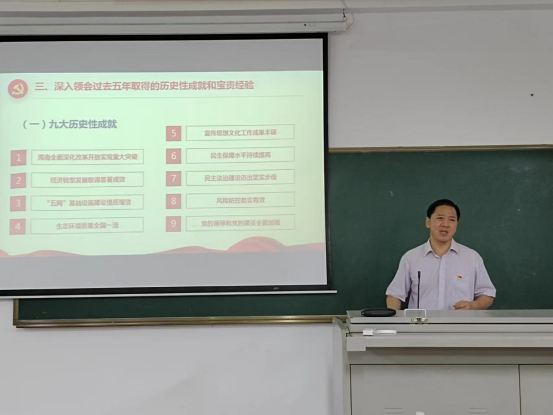 为进一步深入学习贯彻习近平总书记考察海南重要讲话和省第八次党代会精神,助推公司发展,提升内涵建设,6月10日下午,公司党委和林公司党委联合开展 “学习习近平总书记考察海南重要讲话和省第八次党代会精神”的专题辅导报告会。省第八次党代会精神理论宣讲团专家、公司马克思主义公司涂刚鹏教授受邀主讲,欢迎来到公海710胡先文书记、廖建和经理、林公司樊春书记、许先升副经理,以及两个公司全体党员参加。报告会由周郭军副书记主持,